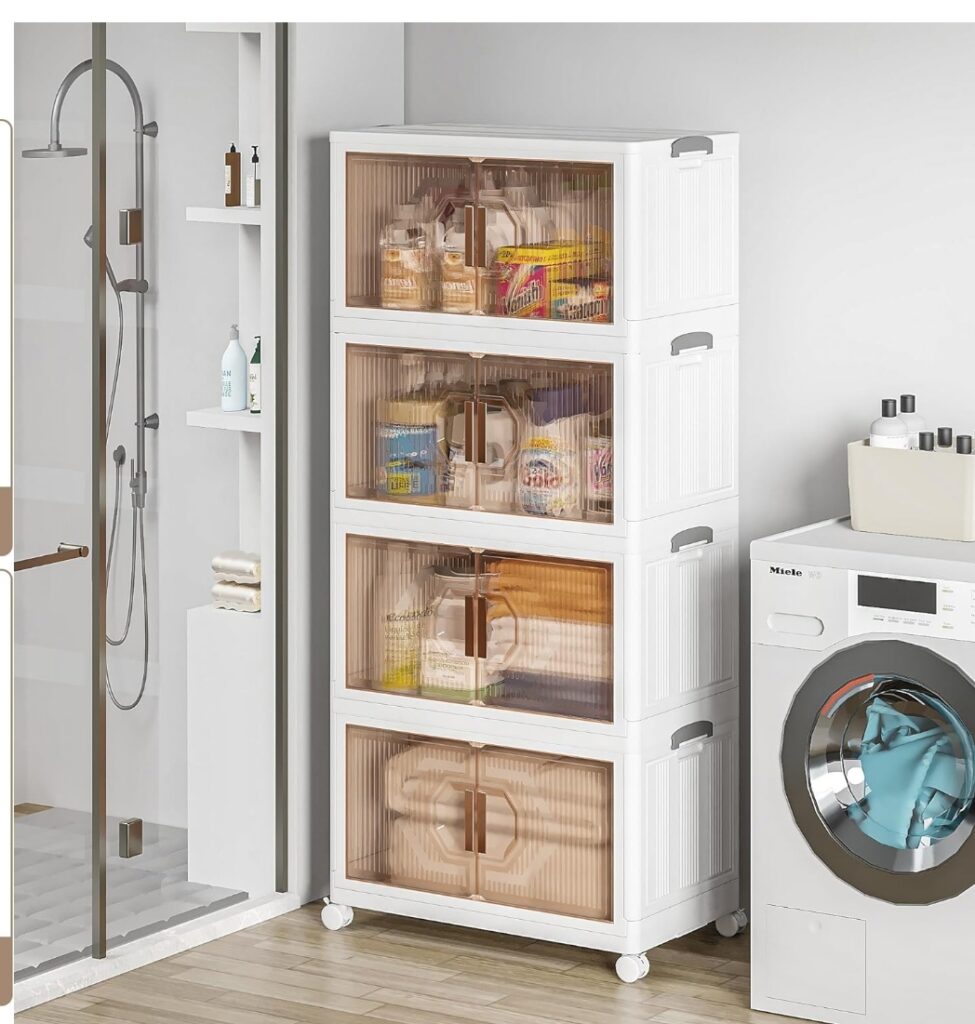 VECELO 19 Gal Stackable Storage Bins with Lid, 4 Pack Plastic Collapsible Storage