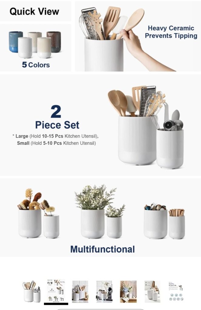 LE TAUCI Utensil Holder, 7.3″+5.4″ Ceramic Kitchen Utensil Holder