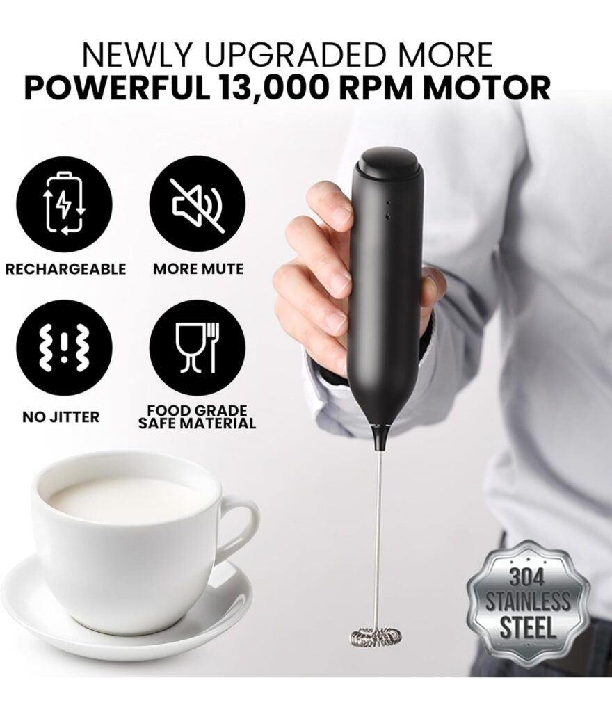 Handheld Milk Frother Wand Rechargeable with Stand for Latte/Electric Whisk Coffee Frother
