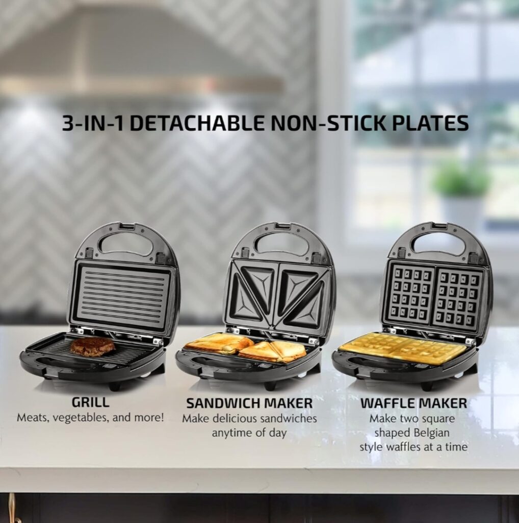 OVENTE 3 in 1 Electric Sandwich Maker, Panini Press Grill and Waffle Iron Set