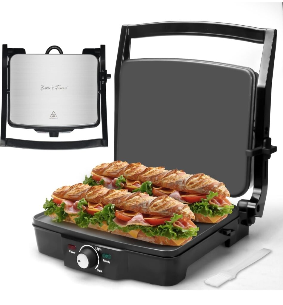 Baker’s Friend Panini Press Electric Griddle, Panini Grill Press Sandwich Maker Press