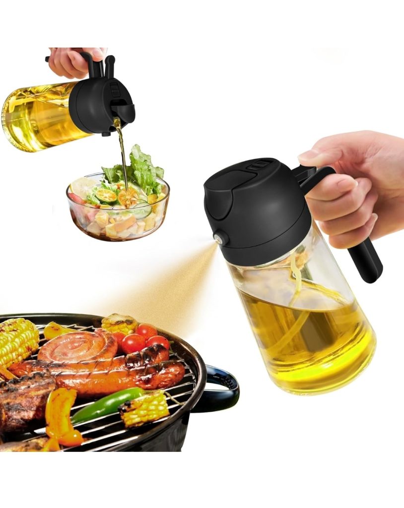 TrendPlain 16oz Olive Oil Dispenser Bottle for Kitchen – 2 in 1 Oil Dispenser and Oil Sprayer for Cooking, Air Fryer, Salad, BPA-Free 470ml Olive Oil Sprayer Black