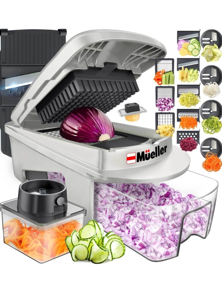Mueller Pro-Series All-in-One, 12 Blade Mandoline Slicer for Kitchen, Food Chopper, Vegetable Slicer and Spiralizer, Cutter, Dicer, Grater, Kitchen Gadgets Sets with Container,
